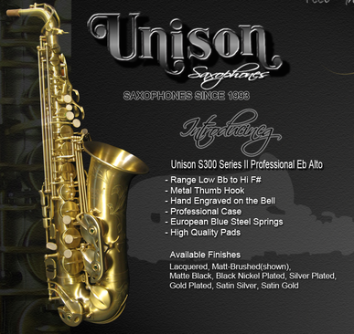 Unison Saxophones are returning to the US. I have been playing these instruments for the last 6 years. They sound fantastic! You can hear them in all of my recent recording projects and various videos that pop up from live gigs. For the past 4 years they have only been available in Japan and China. As of today I will be handling all affairs related to Unison Saxophones in the US. Please contact me directly if you are interested in purchasing a S400 Tenor Sax, S300MKII Alto Sax or "The Phoenix" Soprano Sax. Also contact me if you are interested in distributing these great instruments through your teaching studio.